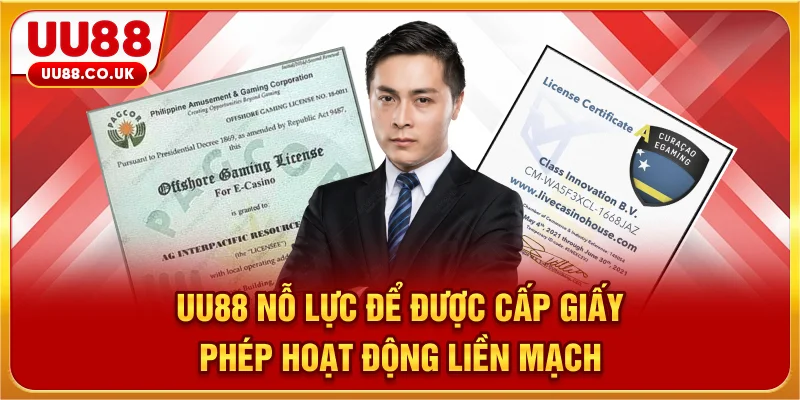 Việc sở hữu giấy phép hoạt động là lởi khẳng định của thương hiệu về uy tín trên thị trường trò chơi trực tuyến. Khi đồng hành cùng chúng tôi, hội viên có thể an tâm về toàn bộ quy trình minh bạch từ khi chơi game đến thanh toán lẫn bảo vệ dữ liệu. Đăng nhập UU88 mỗi ngày nhận quà thả ga, chinh chiến lâu dài.