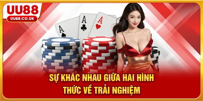 Yếu tố trải nghiệm là yếu tố quan trọng tạo nên sự khác biệt giữa hai hình thức. So sánh game bài online và truyền thống trong khi hình thức truyền thống tập trung vào cảm xúc tương tác vật lý thì game bài online lại mang đến tự tiện nghi, đa dạng không giới hạn.